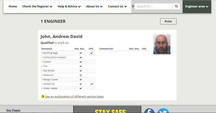 If a plumber does work for you as part of a company, the company is listed on Gas Safe, but the engineer isn’t listed as being one of their plumbers, the work is also invalid.